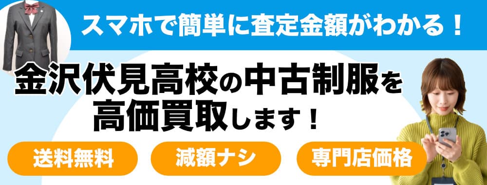 金沢伏見高校は公立の高校です。基本的に公立高校の制服で汎用タイプの制服は買取不可となりますが、伏見高校の制服はデザイン性のあるものが採用されており、高価買取の対象校となります。