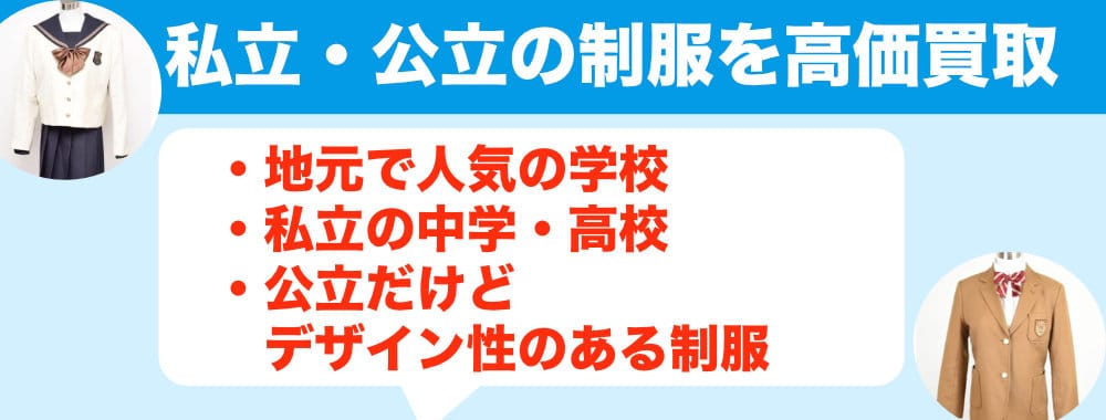 日本全国にある私立学校の制服であれば基本的にどこの学校でも買取対象となります。