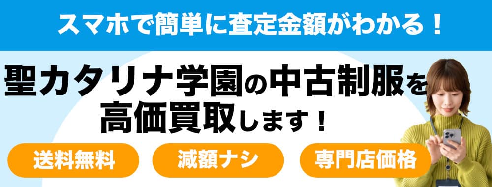 聖カタリナ学園の卒業生・保護者様で、ご自宅に不要な制服が保管されているなら、ぜひ一度査定をお試しください。学生服は丈夫に作られているため、数年間着用してもボロボロになることは少なく、中古でも良いから制服を必要としている方へお譲りすることで、大切にリユースされています。