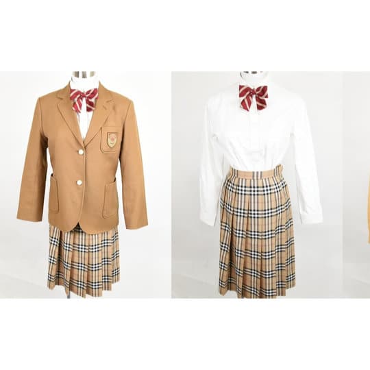 ベージュのスカートはバーバリーチェックで、とても素敵なデザインが採用されています。キャメル制服では最も明るいと言って過言ではないほど、明るいカラーの学生服となります。夏服もまた鮮やかで、ブルーで統一されているデザインです。スカートのパターンは冬夏同一となっています。