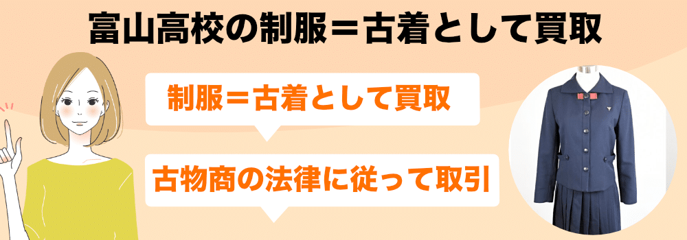富山高校の制服なら、数千円〜数万円(セット内容による)で買取となります。一般的な古着屋・リサイクルショップと比較して圧倒的に高額で買取することできます。