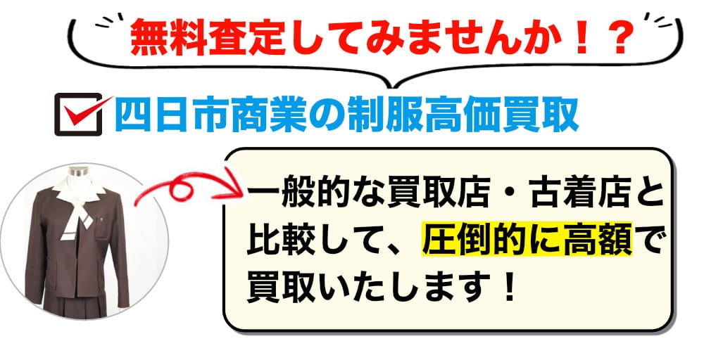 三重県立四日市商業高等学校(通称「泗商」)の卒業生で、ご不要になった制服をお持ちなら高価買取いたします!