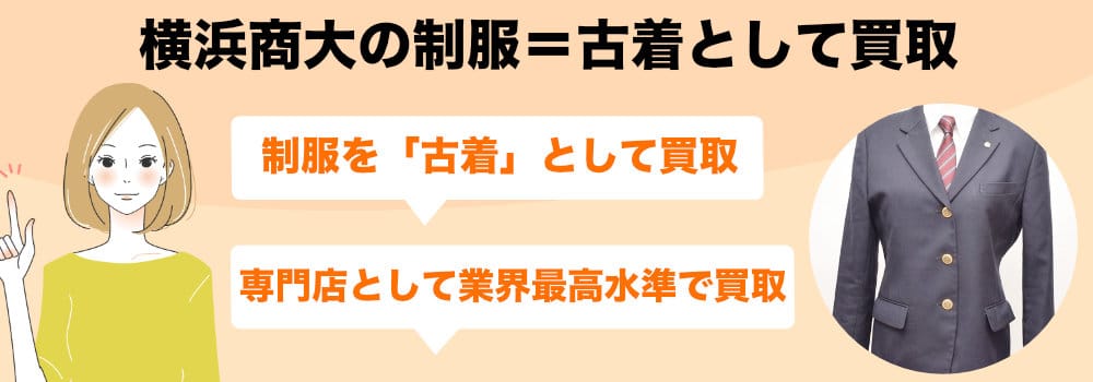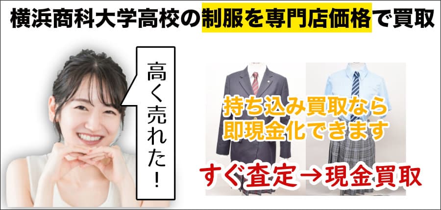 横浜商大の女子制服は可愛いと評判の制服となるため高価買取いたします。